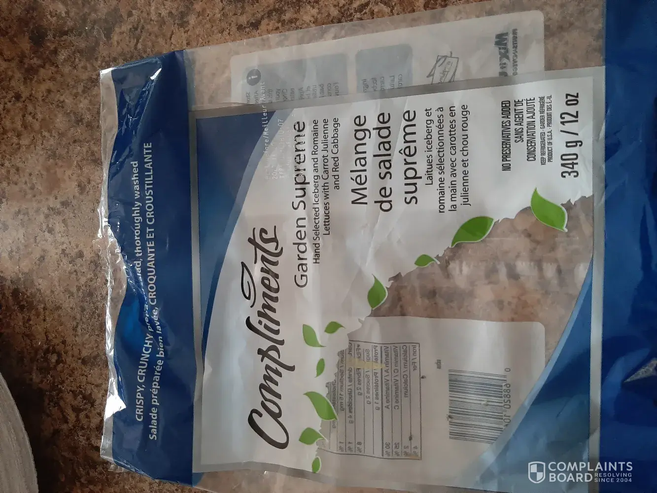 I bought your compliments garden salad like I do weekly. Sat down to dinner and my husband bit into a hard piece of plastic. It hurt his mouth and made his tongue bleed.