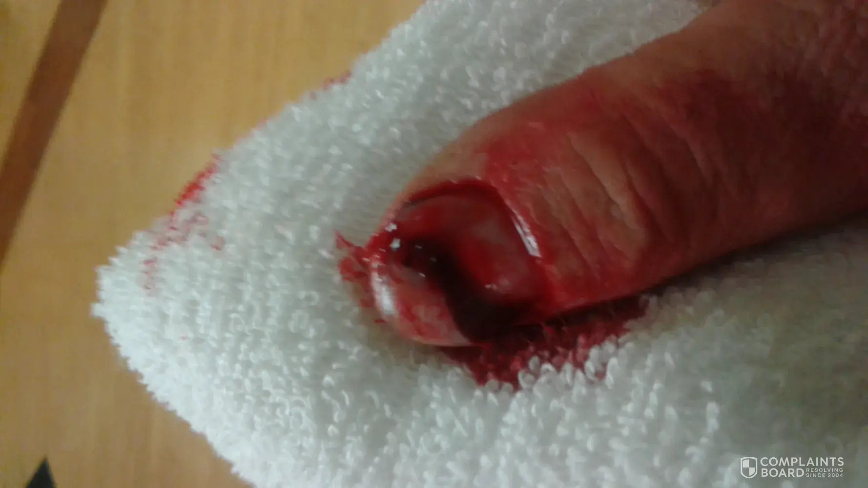 Taking an opposite handed practice shot with a Barnett Quad400AVI crossbow the string injured my thumb on my right hand. The string sliced half of my nail and caused a deep laceration to the tip of my thumb on my right hand. The injury was a fracture to the tip of my thumb and a cut that required eight stitches.