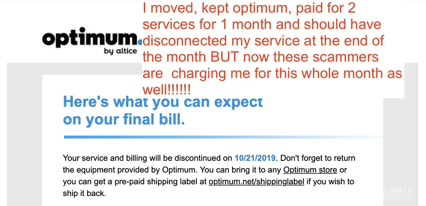 They deserve to get sue by government agencies is a lot of complaints about deceiving practices about Optimum Services.