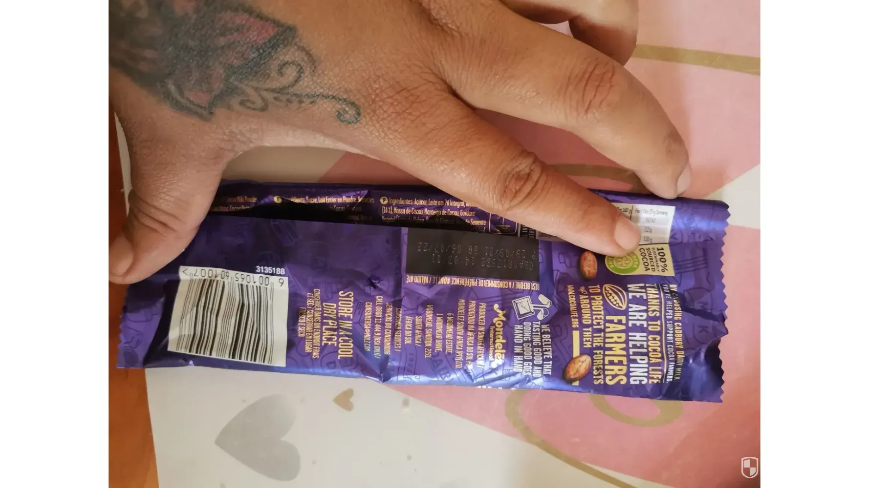 I bought chocolate the big one i came by the house u know i was very digusted in that chocolate that i threw it in the bin i wouldn't ewens give that for someone sleeping out side it was old an u couldve see that its old an i mean i could of got sick im dissipointed in use an i dont have the paper or the chocolate cuase i threw it away i thik two weeks back 5 of july 2022