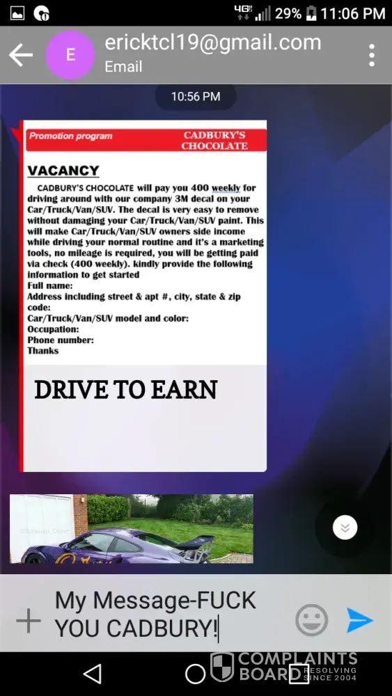 I am livid! What is wrong with Cadbury. Your [censored] people texted me almost 11 pm with spam. [censored] you!