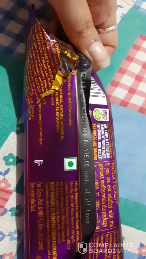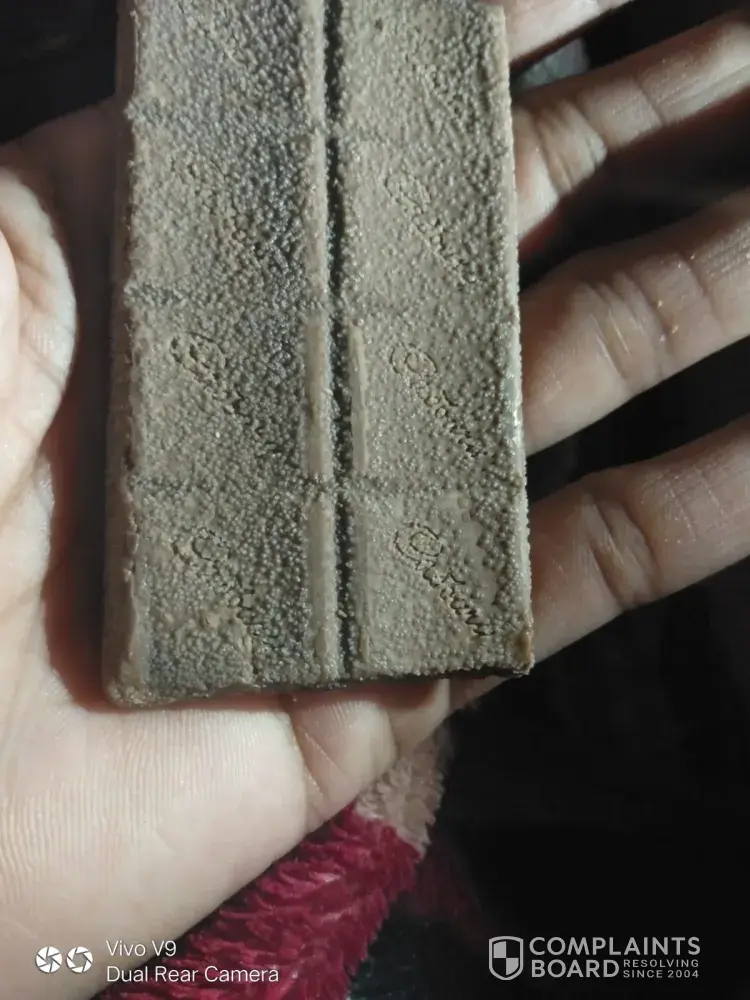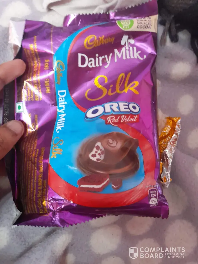 About 3 weeks ago i purchased a DAIRY MILK SILK RED VELVET oreo from a retailer where the chocolate was not in good condition and to be mentioned the chocolate packing was not good the inner cover was too wet and i noticed that the chocolate had avery bad smell with black spots and i feel unsafe to eat this chocolate i have attached th chocolate pics below kindly see to that and i request you to do a favour for me