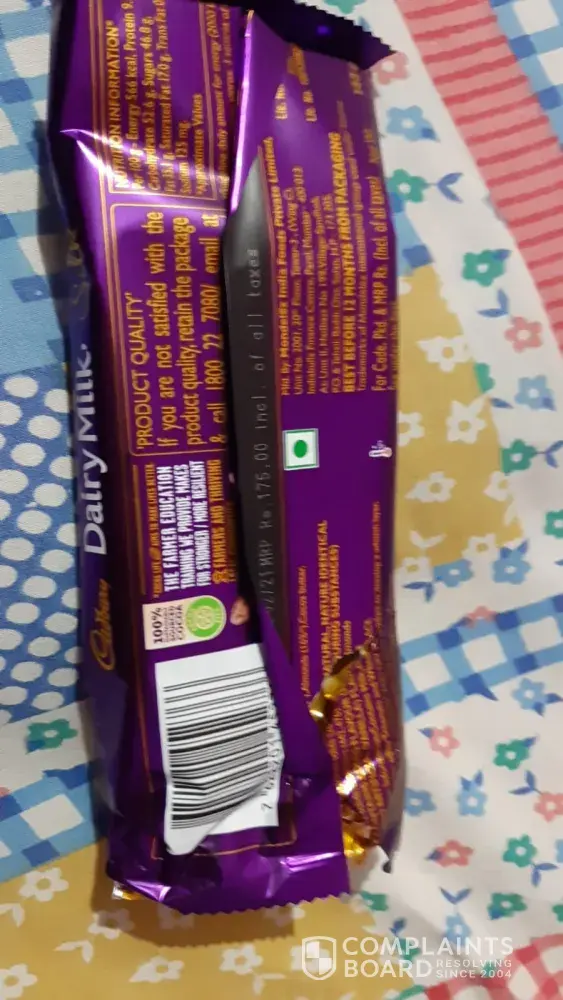 I purchased 3 Cadbury dairy milk of 10 rupees each from a local shop near my house in Thane, Maharashtra on 7th November of 2021.