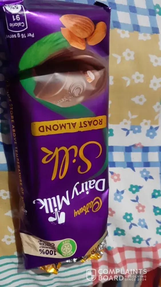 Today on 22 july 2021 I bought a Cadbury dairymilk silk roste almond choclate from a store in Guwahati for my sister. She began opening the dairy milk after coming back home and noticed some white partials on the choclate.