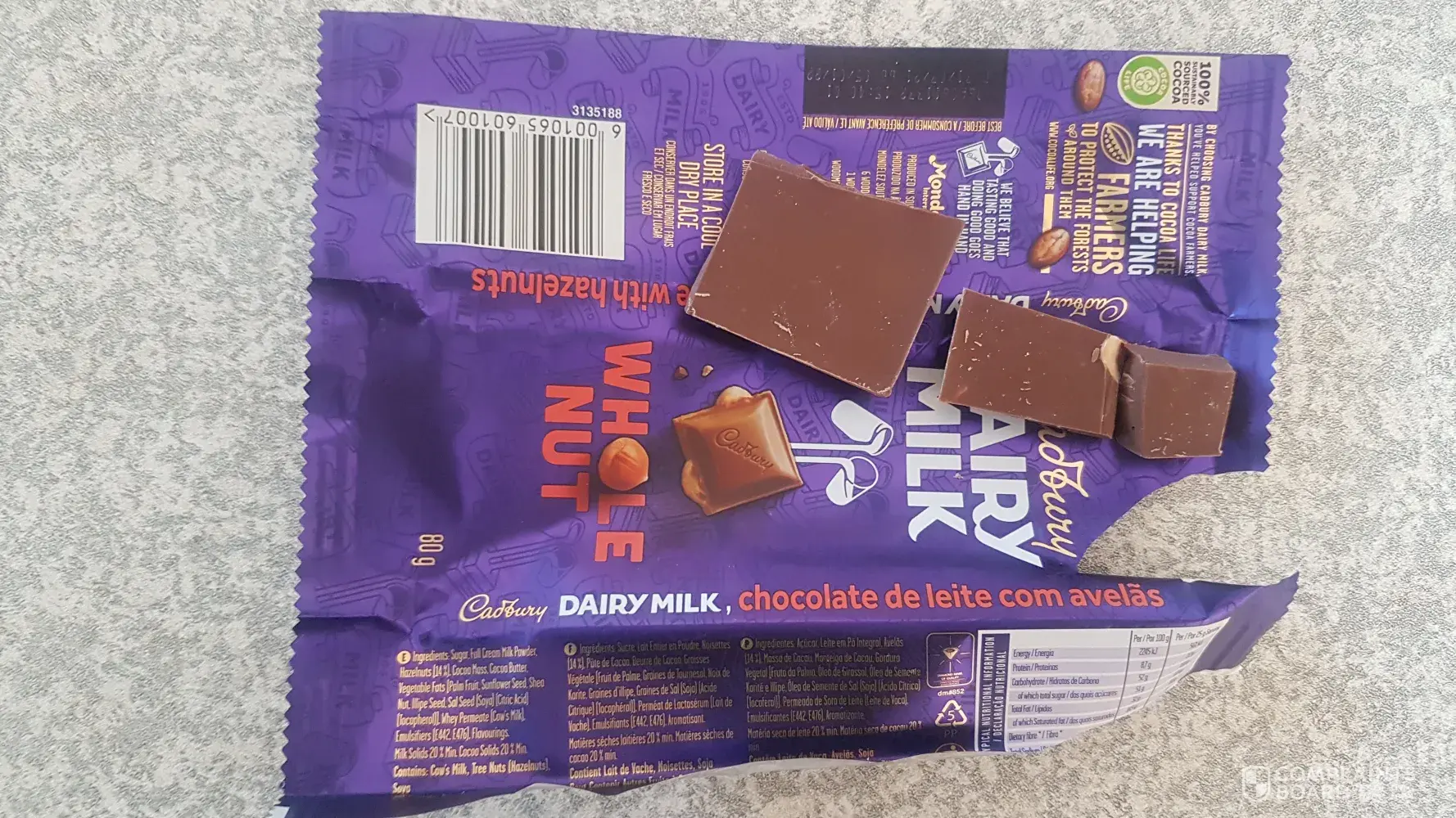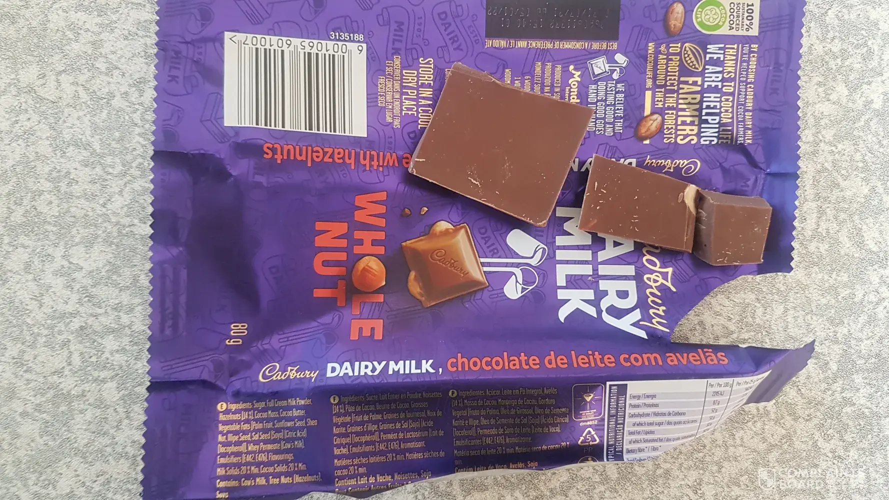 Hi, I bought a Cadbury's slab chocolate, whole nut, and there was only a few nuts in the chocolate. This isn't the first time that I've experienced this with the wholenut chocolate. If I wanted a plain chocolate, I'd buy Dairy milk. I'm really disappointed in your product.