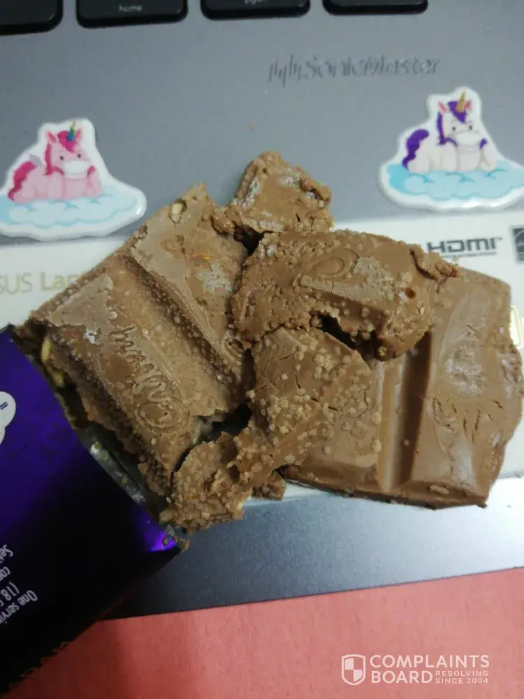 I love chocolates, and Cadbury has always been my favorite since I was a child. To my surprise, for the 2nd time in my purchase of the chocolate, I am very disappointed to begin with. I purchased a bar of chocolate from a 7-eleven store near my work place and found it to be somewhat not how it is suppose to be in consistency or shape when I unfolded the wrapper I purchased a bar of the Cadbury chocolate. I was dumbfounded by the way it literally looked. The expiry date is still a year away yet why was it like that? the chocolate literally falls off like sand and the bar looks unpleasant.