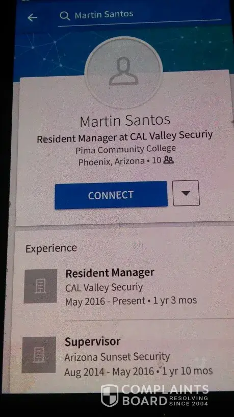 The resident manager appears not to be licensed as well this pic is from az dps website I guess cal valley security as a special way of using their name but martin santos the resident manager is not licensed