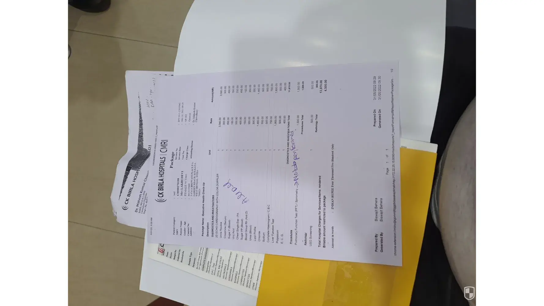 Rs4500 full paid but one report not done.