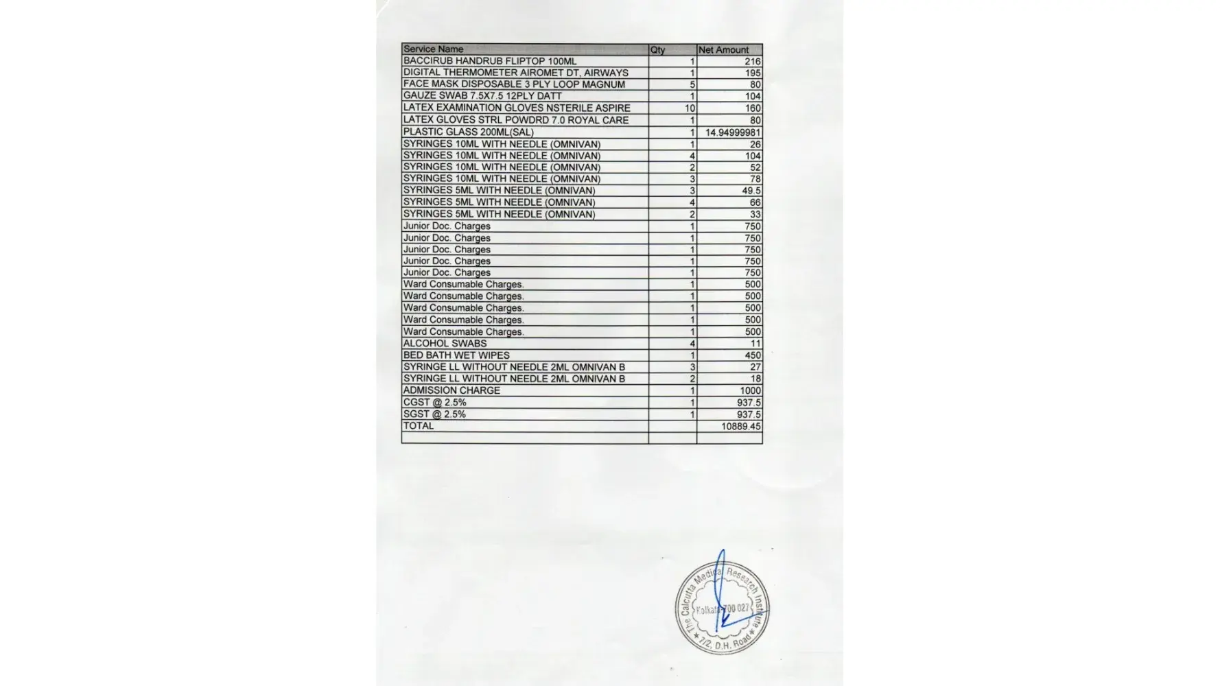 My Daughter, Ms DEBANGANA GHORAI , MRN : C0000448234, age 4 years has been discharge today from your Hospital . We were undergoing cashless treatment in your hospital under HDFC ERGO General Insurance Company Limited from 04/03/2023 to 09/03/2023. The amount you charged me as non-medical –expenses is not included in the list of Health Insurance . In spite of charging Rs.9000/- per day bed rent you have taken additional Rs.2500/- as Word Consumable Charges , Rs. 3750/- as Junior Doc. Charges and Admission Charge Rs. 1000/- which are not under non-medical-expenses list.