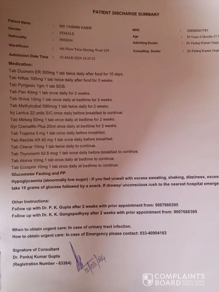 Even the signature of dr. Pankaj kumar gupta is fake in the discharge summary of tpa.