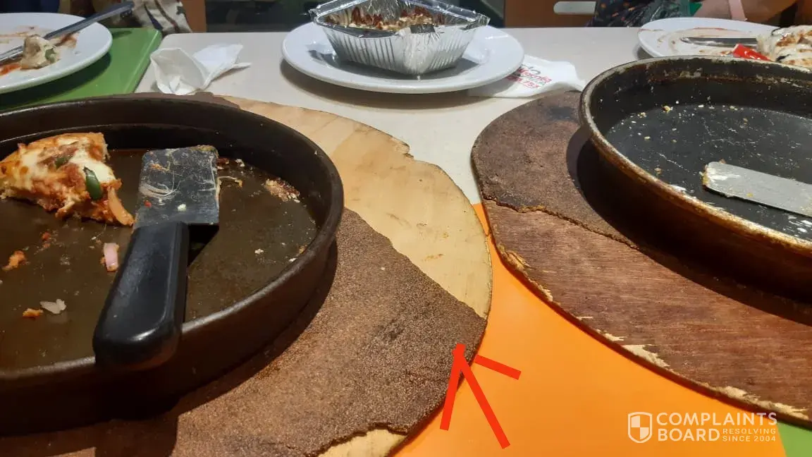 Moreover, they served Pizza on broken and dirty wooden board.