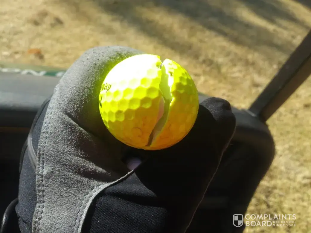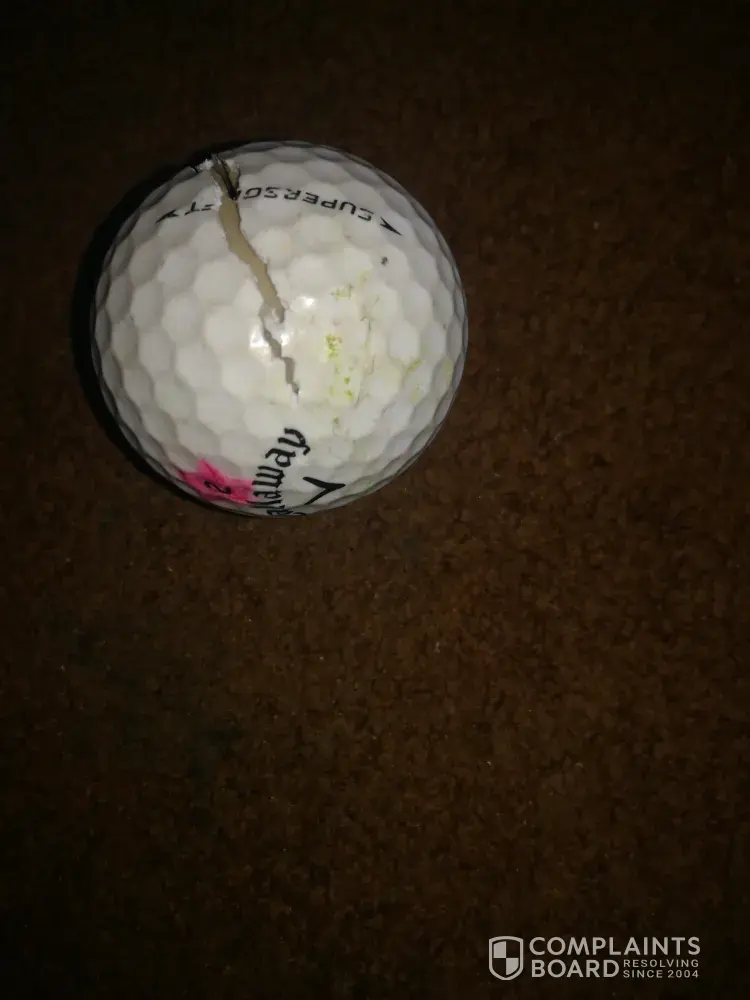 Golf ball broke crack as I was playing in a competition I was not happy because it was a important game and the ball cost me 2 shots I was hitting my drive of the tee boks and the ball did not trafel wel so I gest I did hit a bad shot so I hit my second shot and the ball did the same thing and then I did take a look at it and it was broken and crack