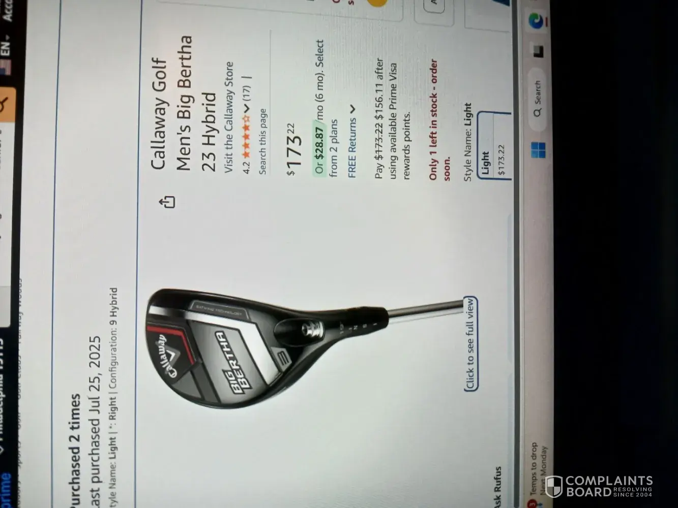 Callaway BB 23 RH 9 Hybrid lgt - regarding Amazon purchase - complaint
