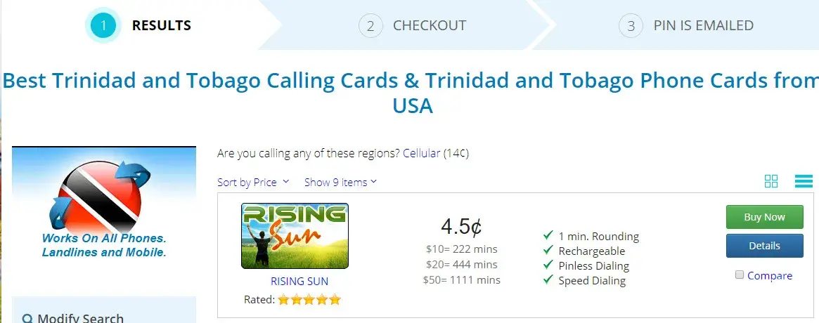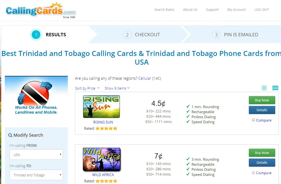 - Went to Callingcards.com and did a rate search for calling Trinidad and Tobago from USA