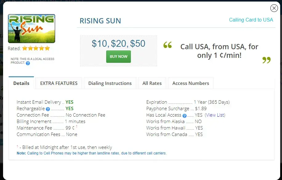 NEVER EVER buy from callingcards.com! I bought a US$20 calling card from them, but everytime I made a call, when I check back the balance, they overcharged me. I had to call back to customer service every single time and ask them to adjust the balance, and the last two times I complained, they no longer credit back the minutes/$$ back to me.