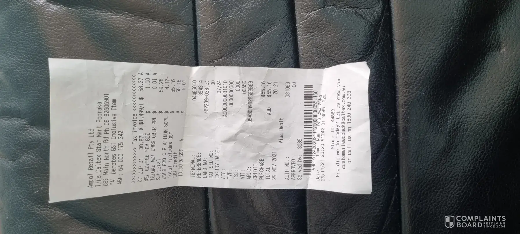 I am very disappointed in Caltex customer service and how the employees handle the situations.