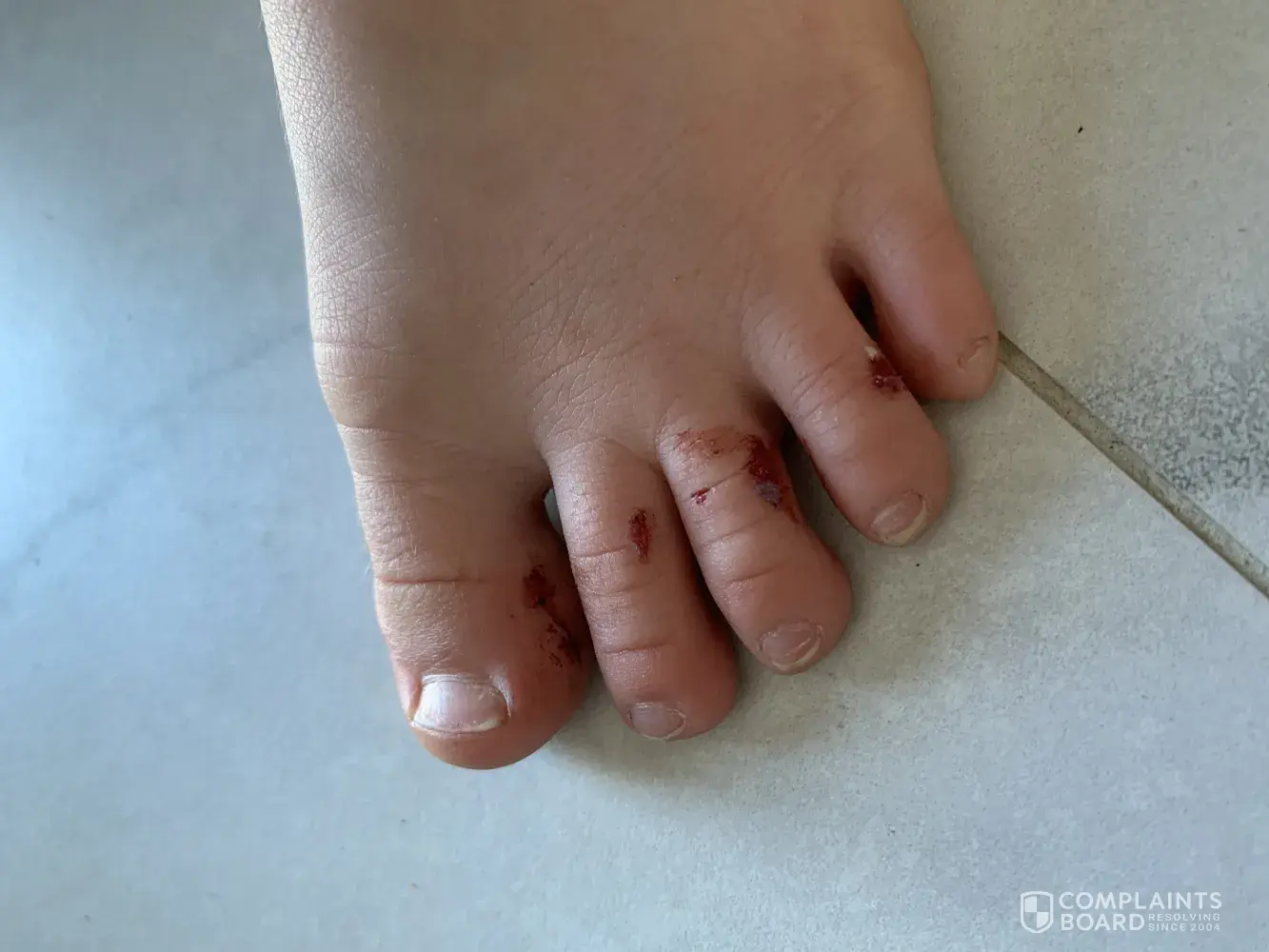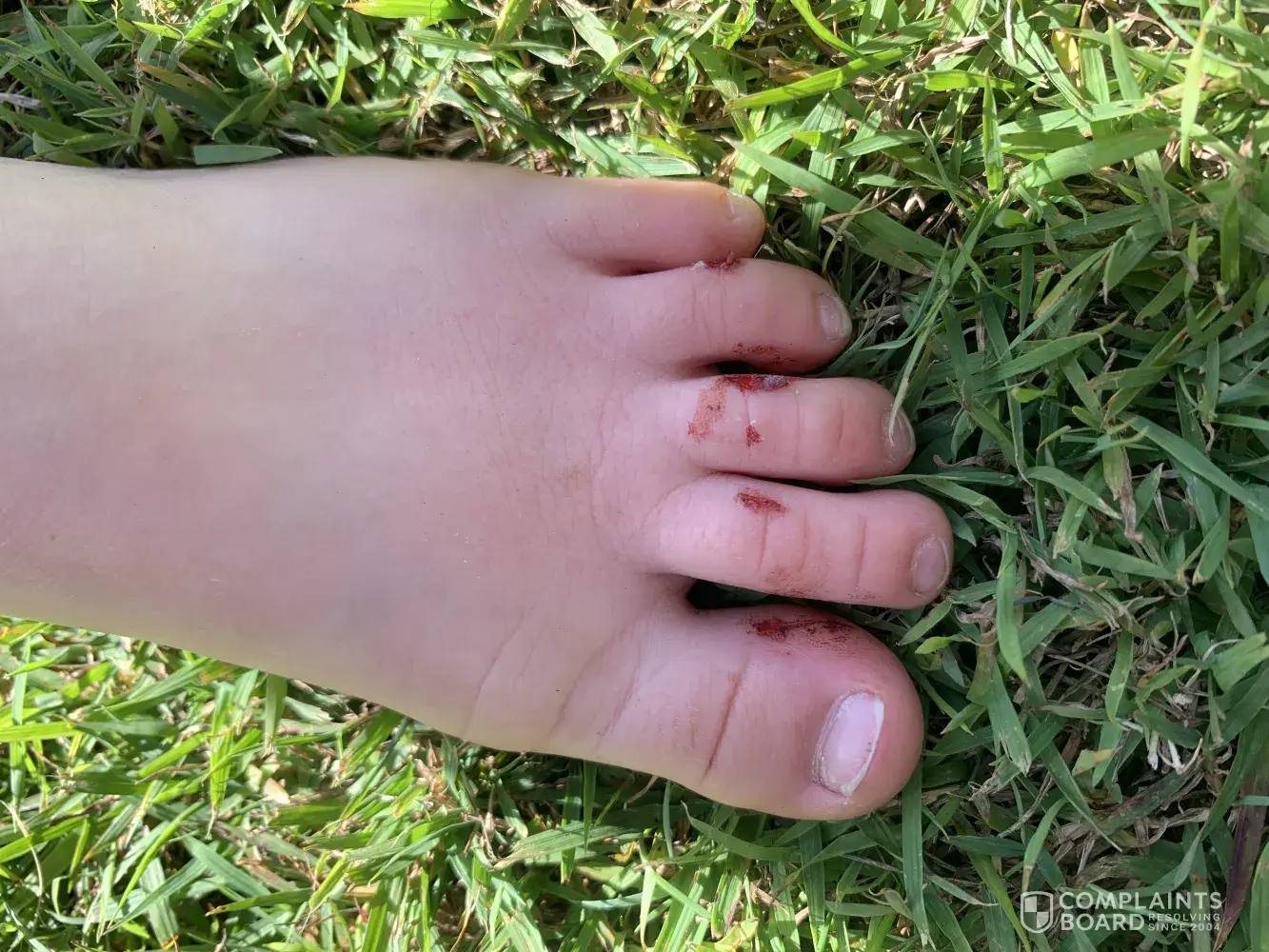 I didn't see the incident my daughter came running to me with blood coming out of her foot.