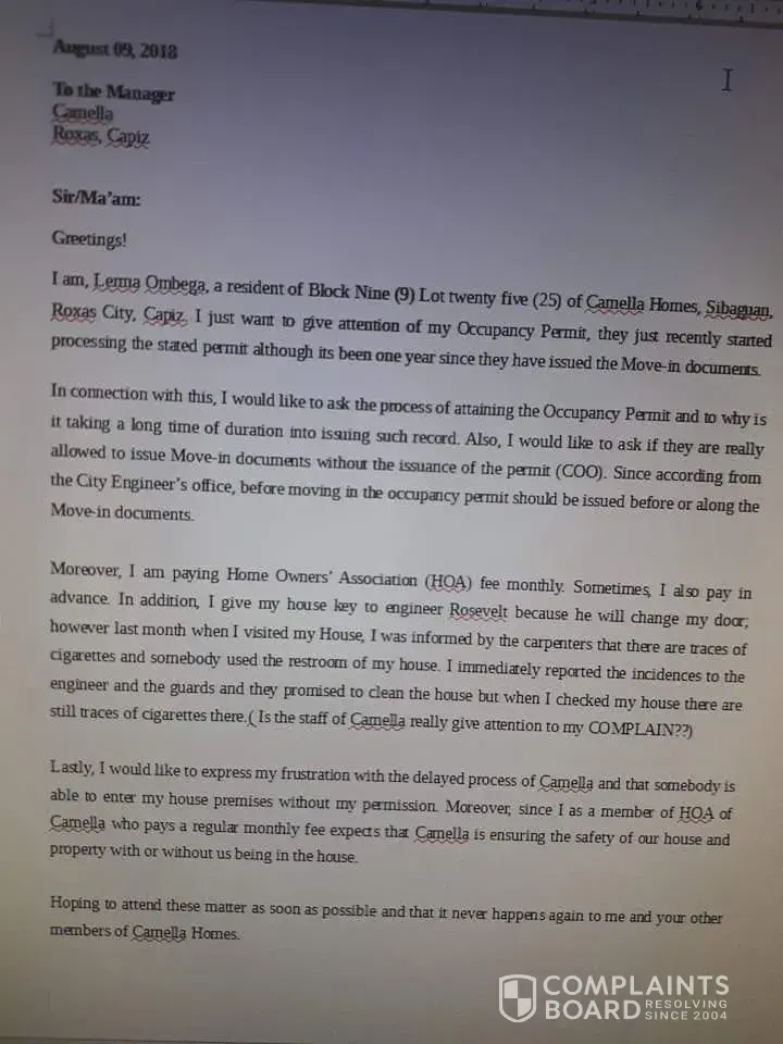 I wonder if this site is legit. Do they really read our complaints? I'm mrs zynthia estrella wife of an ofw. We purchaced a house and lot in camella solamante sorosoro karsada, batangas city. Mind you, our unit is a cara model with ha of 66 sqm only, that is 33 sqm per flr., with carport provision. I paid the full downpayment of p460, 000 and according to the buyers' orientation, contruction of the house will commence after the dp is fully paid. I made the full down payment on may 22, 2017 and the construction started sept 5, 2017. Again during the orientation, they said that the construction will be finished in 6-8 mos. If the construction happened right after the downpayment, our unit should have been turned over in december. But during my regular visit on the site, there was this very long period where no progress was happening witj tje construction and no laborers are visible even on regular hours. During one of my husbands visits, he noticed that the septic tank was very elevated considering that the unit has a carport provision. Since my husband was already onboard, he delegated my brother who is a geogetic engr. To make a projection of the future carport. I made an appointment to the engr in charge of our unit, engr ayson. I brought the carport plan and showed it to him. He said that he will let the contractor define the elevated carport. The usual "paasa" statements ang lagi nilang sinasabi. I have talked to the people of admin. But to my dismay, they are not at all updated with the progress of every unit.in short they do not coordinate. Sobrang bata ng mga engineers nyo, camella! They are like practicumers na pinag aaralan lang ang pag gawa ng plano ng bahay. Camella's projects may be considered as low cost, para sa hindi masyadong maka afford ng sobrang mahal na bahay but it doesnt mean na pati services ng mga engineers nyo and office staffs ay maging low cost. Nasa 4th month na po ako ng monthly amortization ko sa bank and my overhead expenses is more than 50k a month kasi nagrerent kami ng apartment in batangas para sa anak ko na nag aaral sa batangas city. I maintain a yaya kasi di ko sya pwedeng samahan sa apartment dahil may anak pa akong nag aaral dito sa manila. Therefore, i'm maintaining 2 houses at the same time. Napaka babaw po ng ibinibigay nilang reason bat hindi nila maturnover, yung kapitbahay kong hindi pa tapos ang garahe. Hindi daw nila mapinturahan amg kabilang side ko kasi madudumihan. Hello! Are you new to construction business? May paraan po para di nyo ako madumihan. The new school year is abt to begin sana naman e makalipat na kami.