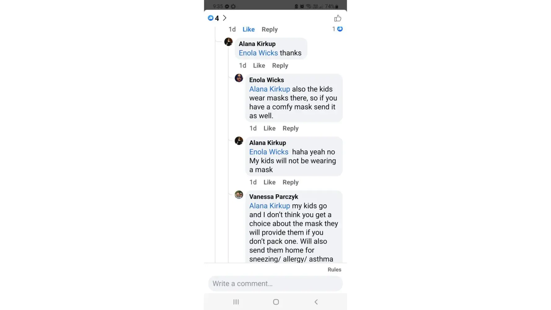 My son tells me he watched them tell every child that came from then on was told to put a mask on