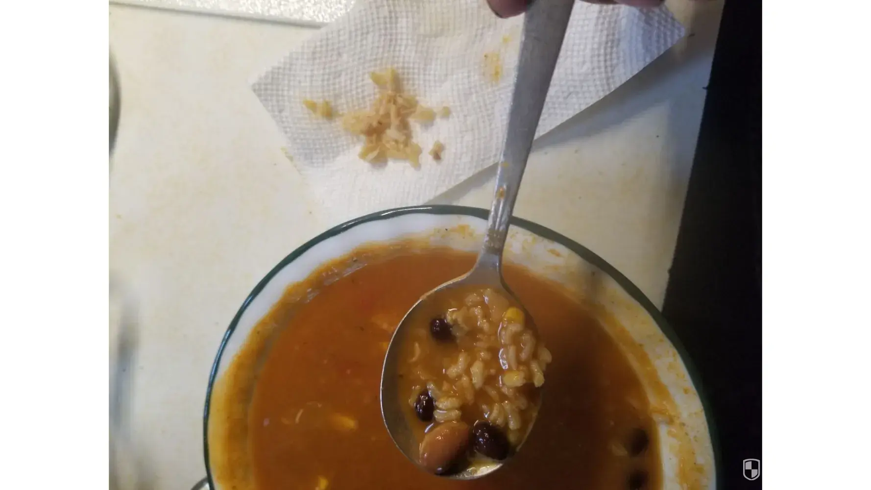 I opened a can and gently heated it on the stove. I don't like my soup really hot. I took a spoonful and began to chew. The peice of square meat was dry as cardboard which was bad enough. The "rice" was hard like plastic. Spit it out into a napkin and it LOOKED like plastic peices formed to be rice. I thought, maybe I didn't heat it enough, so put it in the microwave for 1 minute. No change. The so called rice was unable to be made softer and the squares of "chicken" went to the dog.