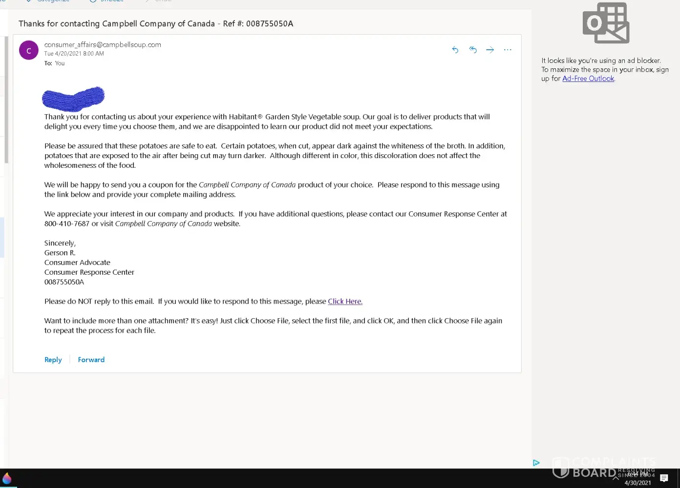 Desired outcome: Money back or coupons for future purchase
