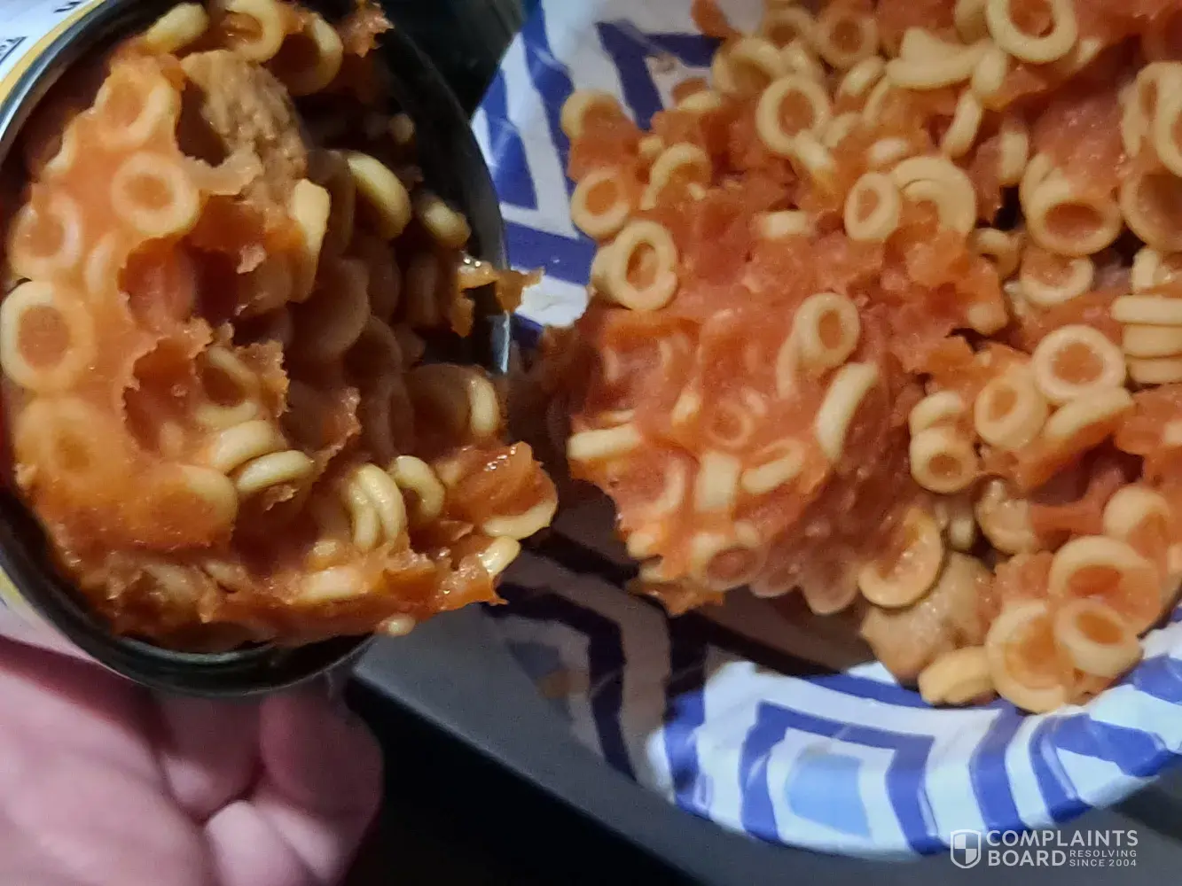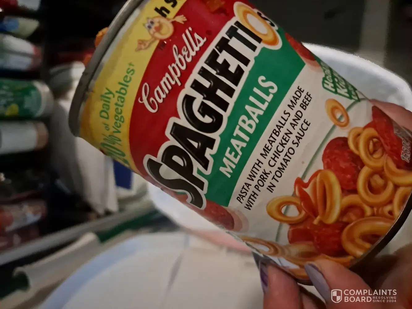 I've had 2 cans in the last week that I had to throw out because they were separated in a lage hunk of spongy dry pasta and meatballs, and a clearish liquid. They were in date, and were kept in dark pantry. Not sure if they were spoiled, or what, but they were disgusting. I bought them at the local Jewel Osco. I have never seen Spaghettios look like this, and my daughter eats them once a week because she loves them. I just want to make sure that you are aware that there may be something wrong with this lot of cans, and to hopefully get credit for the 2 cans I had to throw away. Thank you.