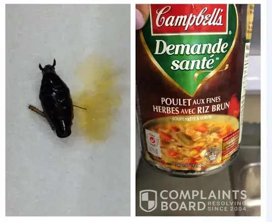 So back on january 5th, 2010 I was enjoying my favorite soup, the creamy chicken and dumplings soup. I noticed something in it which turned out to be a beetle. Brown and abot 1/4"long, 1/8" wide. I called in and was asked how I had prepared the soup, if I had eaten it (sadly, yes) and would it be okay to compensate me. Seeing that I was out my $1.50 for the soup I said sure. I got an apologetic letter and coupons from them.