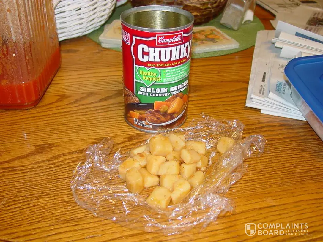 Haven't gotten ill yet but am sick of the false or exaggerated advising that describes their soups as "vegetable" soups. Almost half the can of their Steak & Vegetable soup is filled with potatoes, the one vegetable we can all do without. See the photo. No wonder diabetes is rampant.