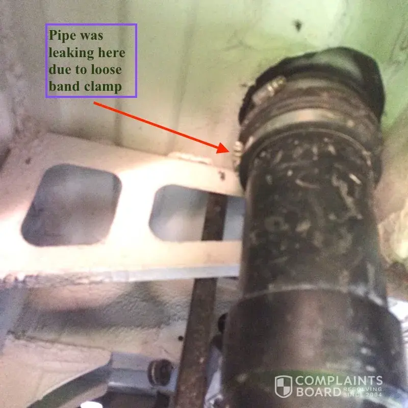 Feb 15, 2018 we are now in the Great Cyprus Park. There is a very strong urine smell around our RV. You can smell it 100's of feet down wind. This is very embarrassing! Reservations for this trip were made a year in advance so we are on a tight time schedule if we have to cancel we will be charged a fee. I called Camping World to speak to a service manager. I spoke with service manager Johnathan he knows of no one personally on the east coast that he can recommend for repair. If we get the repair done, send him the invoice and he will reimburse us. So we are on our own. My self and another camper blocked one side of the RV raising it 6" which allowed him to get underneath and see what was leaking. He found the cause a large rubber boot was loose and the clamp was not tight. Since then no leaking.