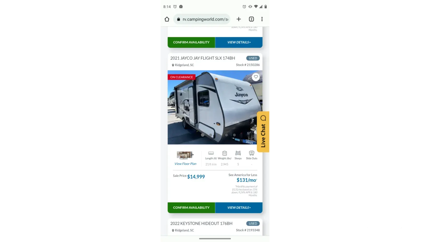 I went to Ridgeland SC on May 20 to see some RVs that were under $15,000. I got there about an hour before closing and was shown two RVs. I went with my mom the first time, so she can verify/back me up. One was a new Coleman and the other a 2022 Jayco. They say they need to see if I can actually tow a camper since I don't have a tow package on my jeep. I go...