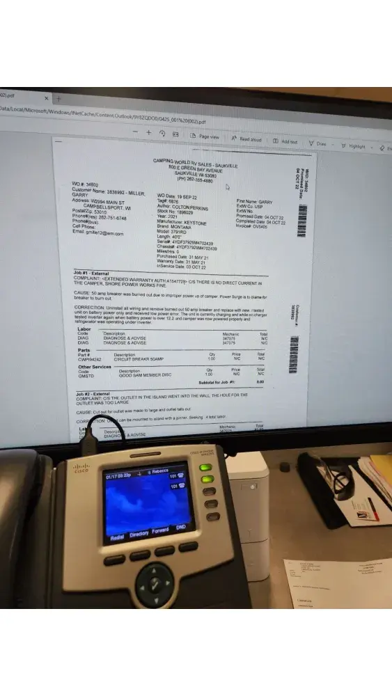 We had a work order October 4, 2022. We brought up the areas of the camper that needed to be done to the camper. My husband said I want to give the ok before you do the work. Well, they did not wait for the ok to do the work. There were items on the work order that could be fixed by us that would not cost me $82.50 each. We purchased this camper for 98k now we had issues the day we came and purchased it. The financial person quit so the Manager had to do the paperwork. We waited over 3 hours. Next, we broke down and the Manager did not ever turn in our towing insurance that we paid for. -4 hours on the interstate and had to deal with it ourselves. Which was reimbursed by Camping World, but still an issue. When we had our walk through in the camper, we stated one of the issues of the TV Stand and Closet. They said we will fix before you leave. Well still have issues so we put it on the work order. We know that we are over the 1-year period by like 3 months but live up to the product you are selling. Example: A Cutout for an outlet was too big and it fell right inside of the cabinet. ($82.50) charge. Brackets on the couches never installed properly. ($82.50) charge. TV was not high enough mounted - remotes did not work (asked regarding this on walk through). ($82.50) charge. Valance on the kitchen window never screwed in. Did walk though after the WO in October still not done. Was told would not get charged. ($82.50) charged. Closet Door does not close properly. Noticed this on walk through was supposed to be fixed. ($82.50) charge. The paneling near the bedroom door is curling and loose. Per them Lack Staples and Nail. ($82.50) charged. Don't forget that I got separately charged $82.50 for the diagnose and advise. Wasn't that the deal on the per item ones? The one thing that did get fixed was the Circuit Break 50AMP was not installed correctly. Breaker burnt out. We do not travel with our camper. We keep it during the Summer Months on a piece of land. We store it in a well secured cemented shed in the Winter Months. We take care of our purchases. I sent in 2 complaints directly to the store. The first one was ignored and the 2nd one I sent I was going to the BBB and of course it was responded to it immediately. So technically I was charged $495.00. I agreed with a Jim on December 16, 2022, that we would get a gift card for $175.00. Well guess what never received it, and it is January 23rd. We spent well over 105K on just items in the store along with memberships etc. It is so disappointing a company is ran like this. I always give them opportunities to make things right, but I am frustrated and need a resolution.