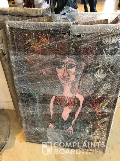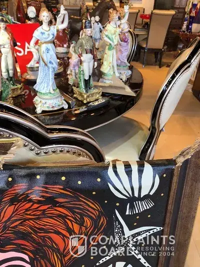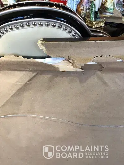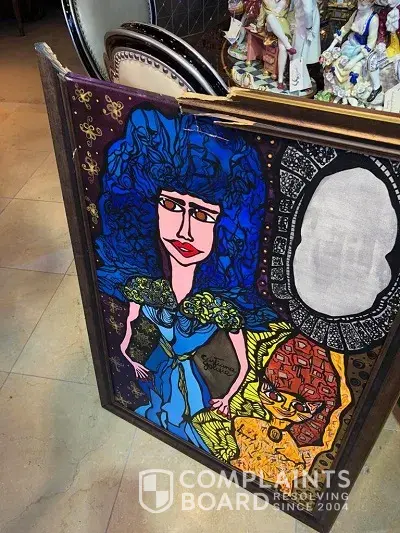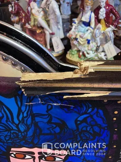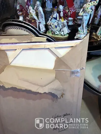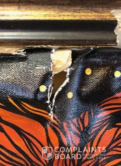 Serious damage frames & canvass tears. appears parcel was dropped onto railing approx 8" in width...from a height or pierced with a rod from a loading truck?
