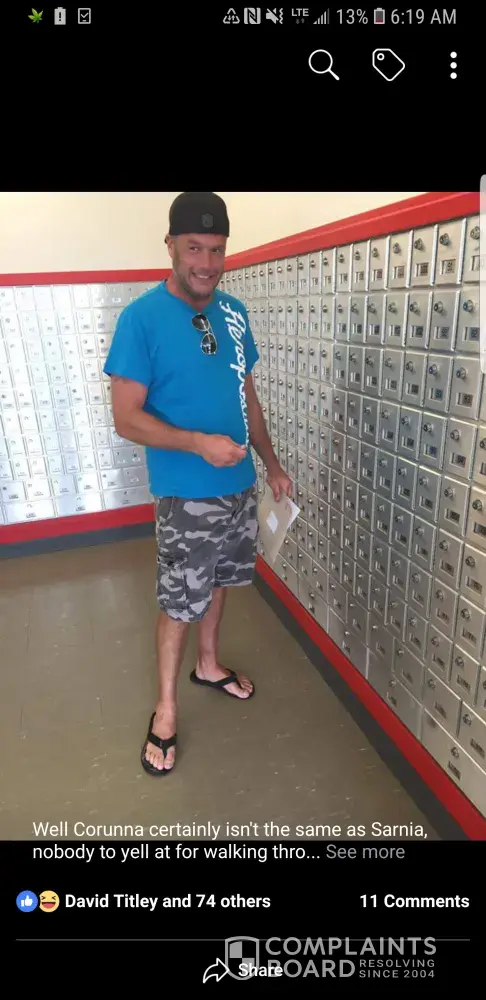 I live in sarnia a post man that changes his route often has now been in my neighborhood. He is very unpleasant almost confrontational. As well he has been smoking pot in my neighbors side yard between the houses. I think he thinks know one knows but kids can smell it. Also I have company that wont come over in the day to avoid this man. He is a terrible employee and possibly a criminal what r u doing hiring a peice of work like Woodrow "woody" James. I know the name as he has assaulted and threatened people I know in the past. I would rather not receive mail if this is the quality of your employees. Pls remove "woody" Woodrow James from my neighborhood in Sarnia.