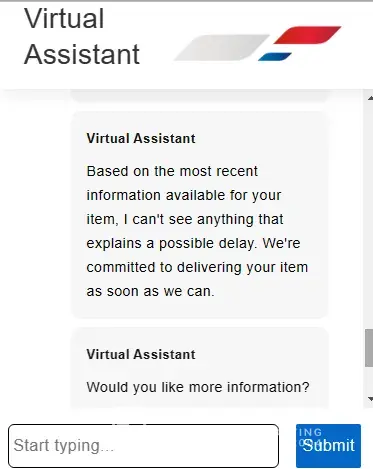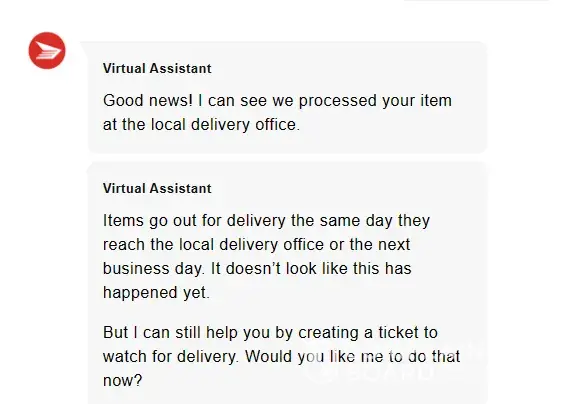 Check out this response (see attachment) from Canada Post's online Virtual Assistant to my latest missing order. You gotta love their soulless AI assistant. It just loves to rub it in.