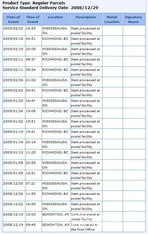 So, you might think as I have thought that having a tracking number for a parcel would help you. Check out the screen shot attached. This parcel has now been to Richmond B.C. eight times. It is suppose to be going to London, Ontario. What does Canada Post say? I have a 50 / 50 chance of ever getting the parcel back. I can just watch forever the parcel going...