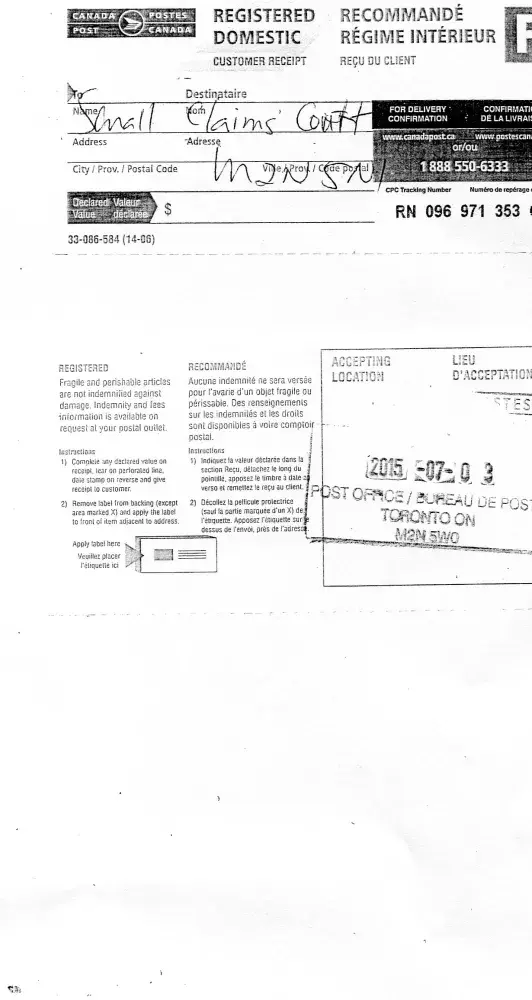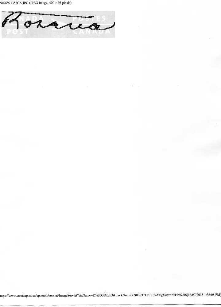 On July, 03, 2015, I paid for a package to be delivered Registered Mail; a valid signature was not provided by the recipient.