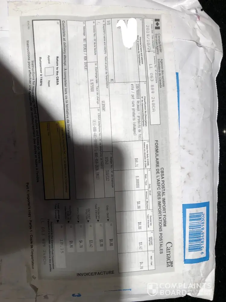 I ordered flea meds from my pet believing I was ordering from Canada or possibly US because I was billed in USD. My order arrived and it came from Germany, was damaged badly and I had to pay a $19.11 customs bill!