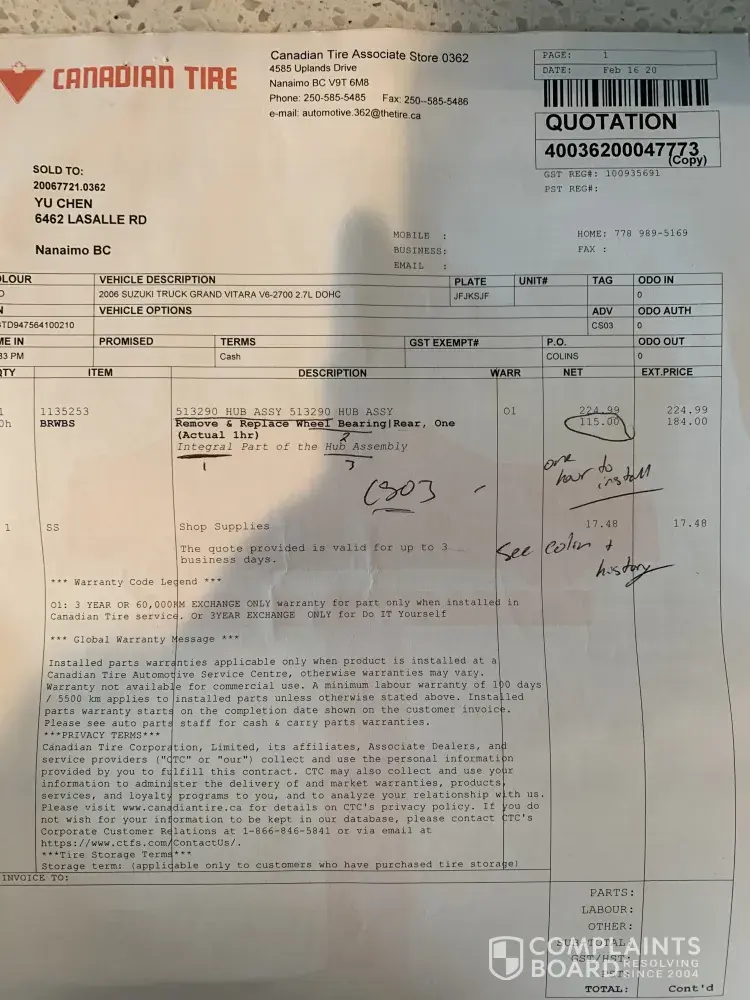 I went two the Canadian Tire, at 70 Rue Simonds N, Granby, QC J2J 2L1 about two months ago for an oil change and coolant flush, few days ago I started to experience a radiator failure and my cooling system rubbers all expanded, I went to my mechanics to check it out, and they told me two things first the wrong colant grade was used for my cooling system and...