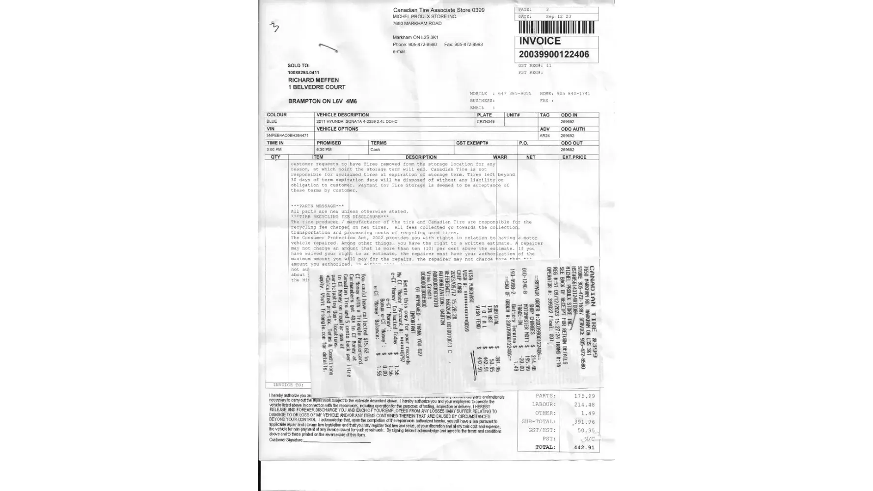 I took my 2010 Ford Mustang into the Canadian Tire Auto Centre at 157 Vermillion Road here in Winnipeg for an 8:00 A.M. on Friday October 6th, 2023 appointment for a grease and oil change. The low tire pressure light on the dashboard was on so I told them to check the tires and turn off the light. They told me that they had to order tire sensors from the...