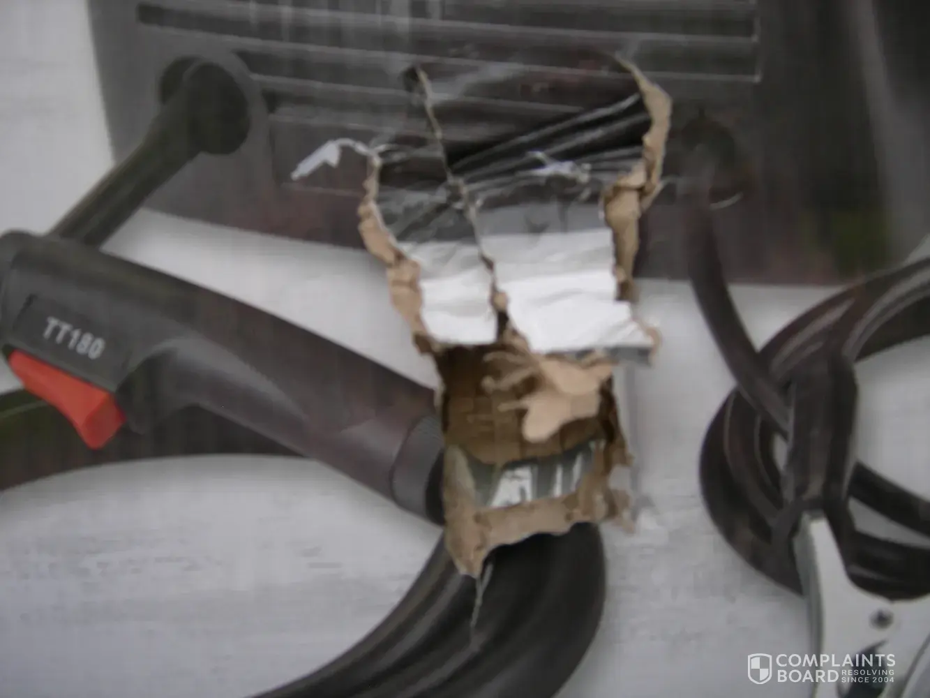 - Through the hole, you can see that the packing styrofoam is broken.