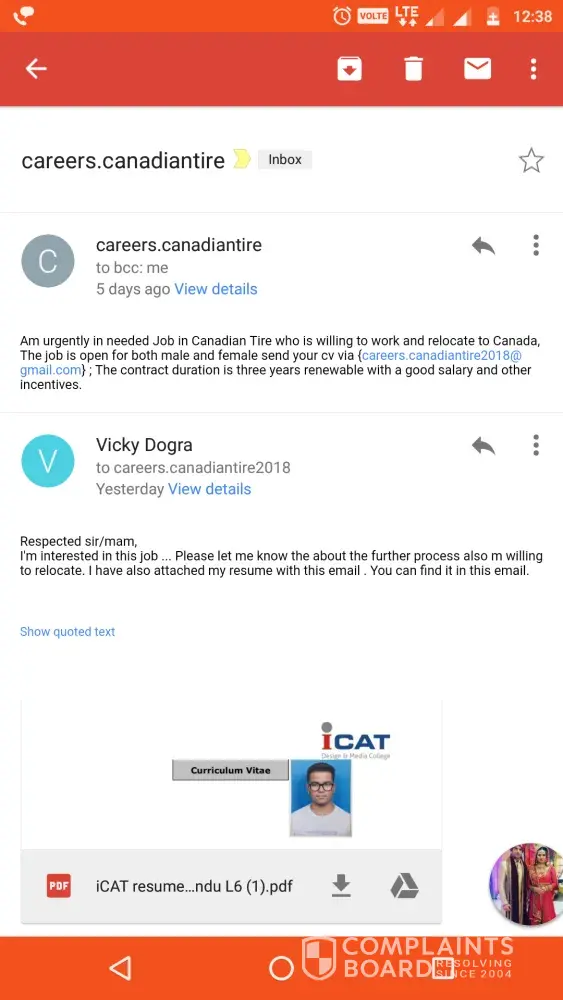 I got a email regarding job from canadian tire...