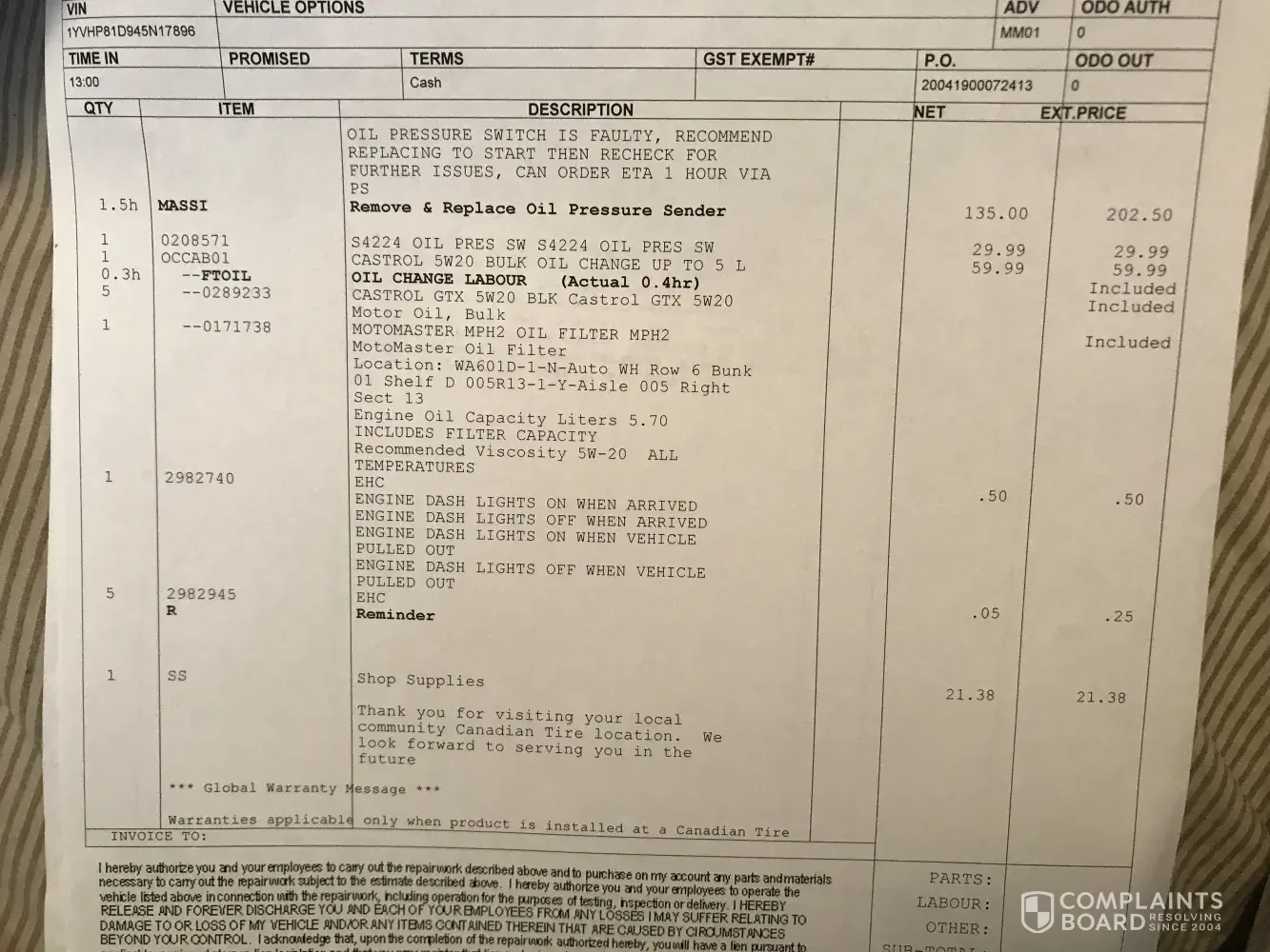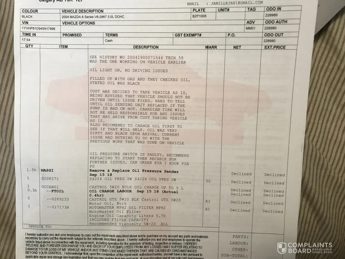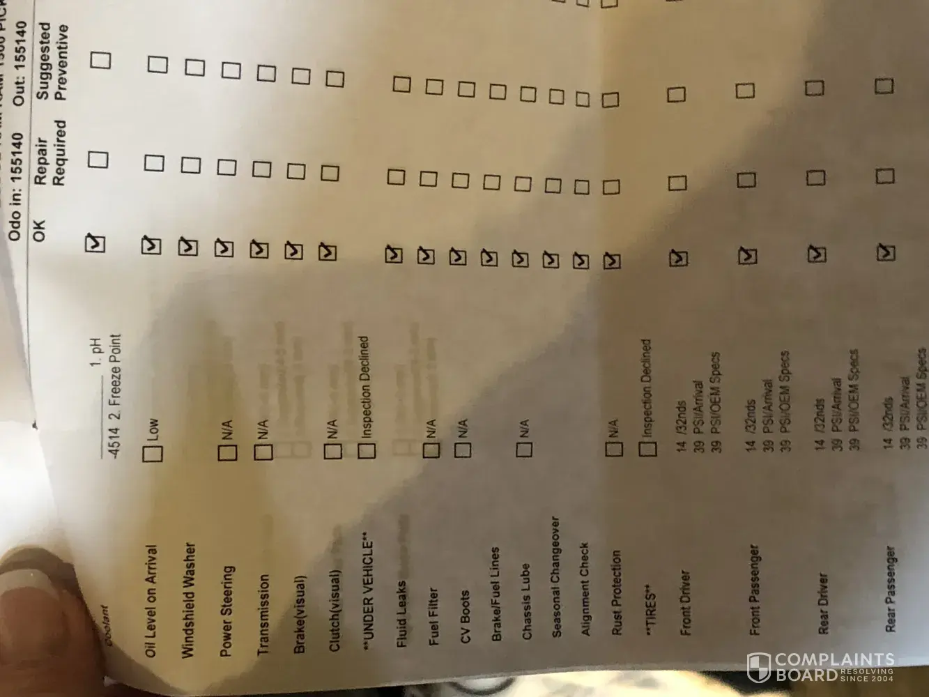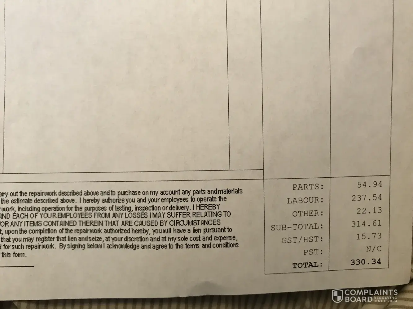 auto service complaint