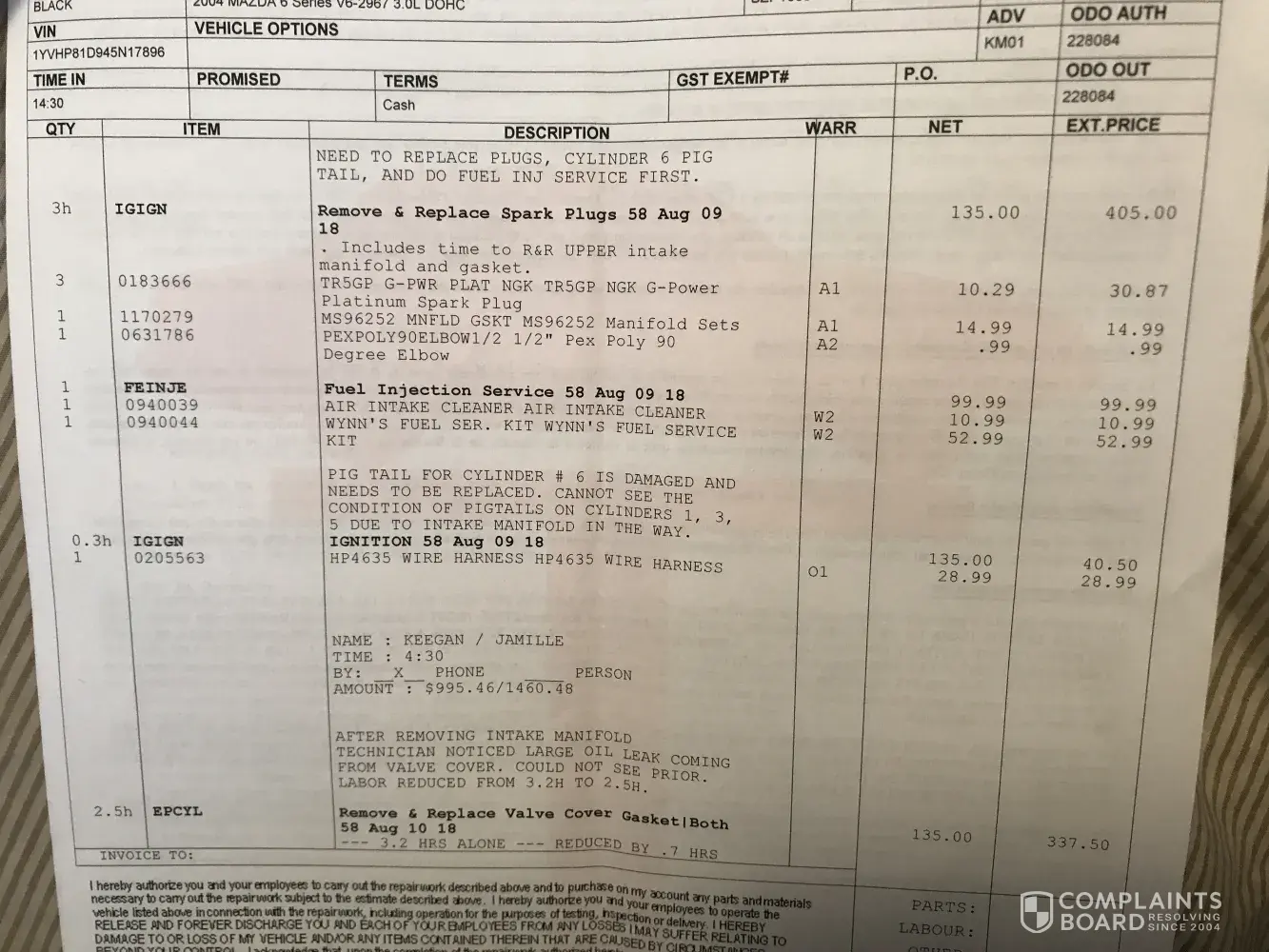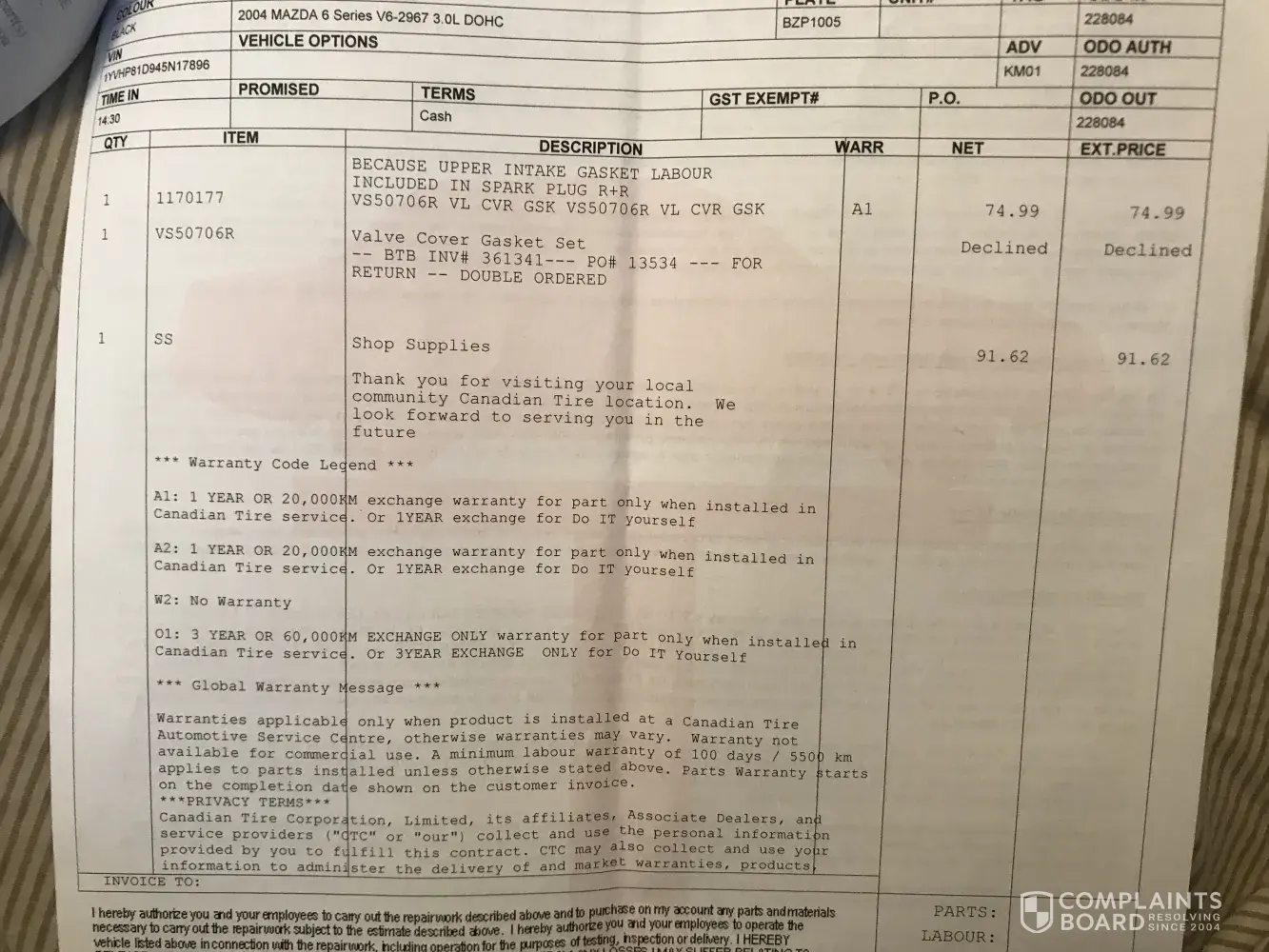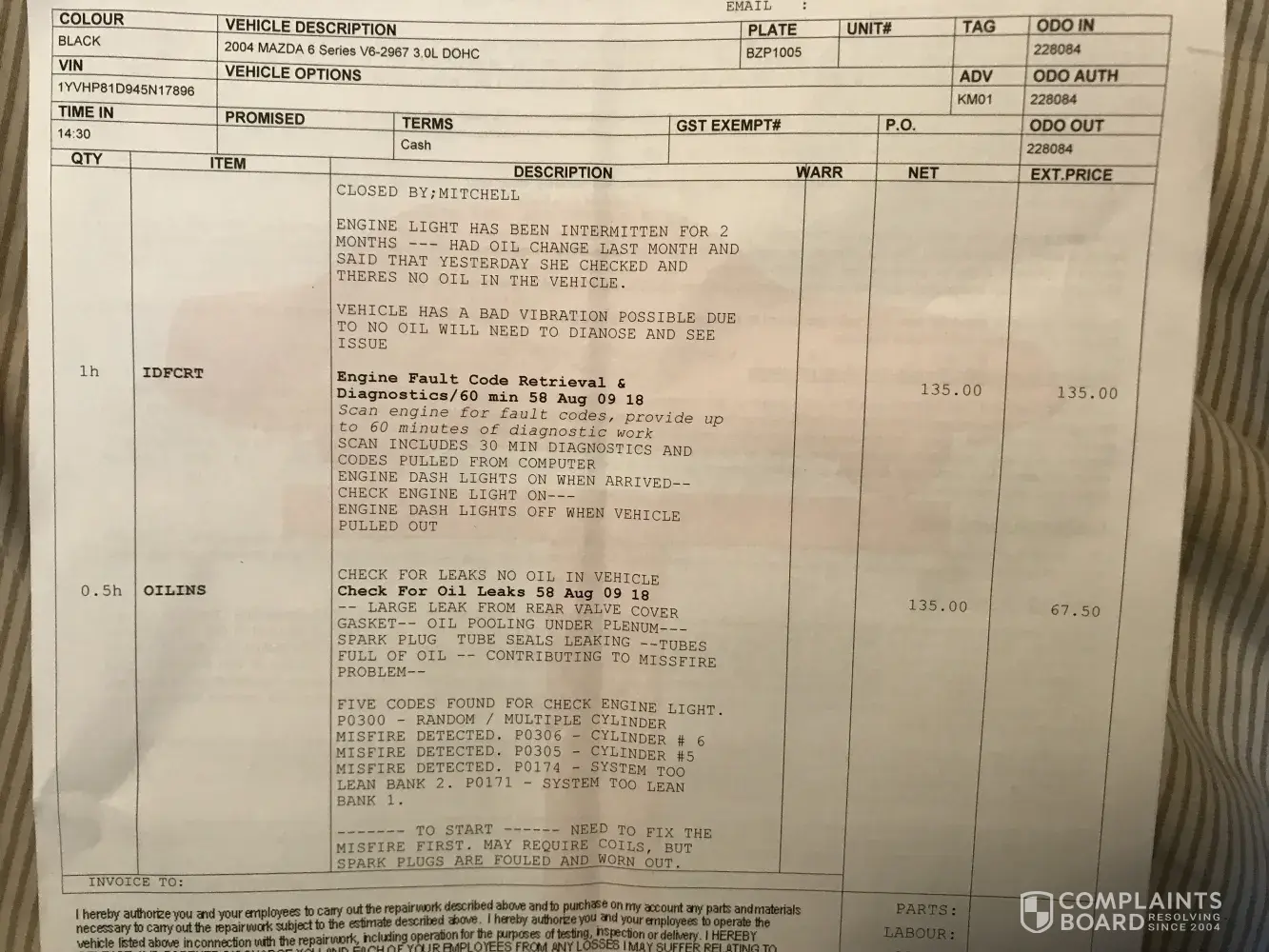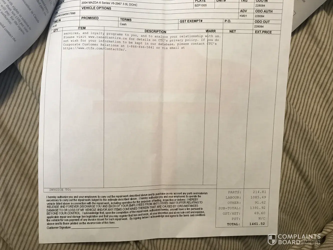 auto service complaint