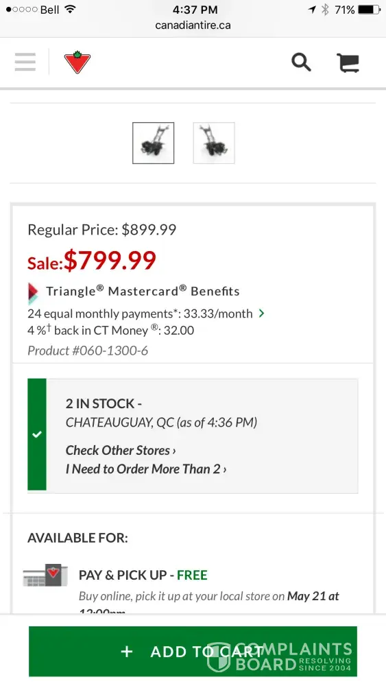 2018-05-20. 2:00 pm - I went to the CT store in Chateauguay, QC to buy a Champion Rototiller advertised for $799.99. After speaking with a clerk, I was issued a floor agent to help me with my purchase. Verifying that this branch had two pieces of this equipment, the agent then tried to find the manufacturers manual legally required for every tool, machine, or piece of equipment for sale to the public. After two hours, thy still could not find a manual for either of the rototillers. No one came to update me except to say "we're still looking".in the mean time, the truck I hired to transport the tiller is waiting outside the store. At 4:00pm I gave up waiting and wanted to speak to the store manager who was in the office behind me. He refused to come out, even after I requested he speak with me. Instead, a Mr. Tahgrib, a manager from another part of the store approached me and asked if I was the person waiting for the manual, I confirmed that and he replied they're still looking for it. This is now 2 hours later and 4 employees looking for a manual.