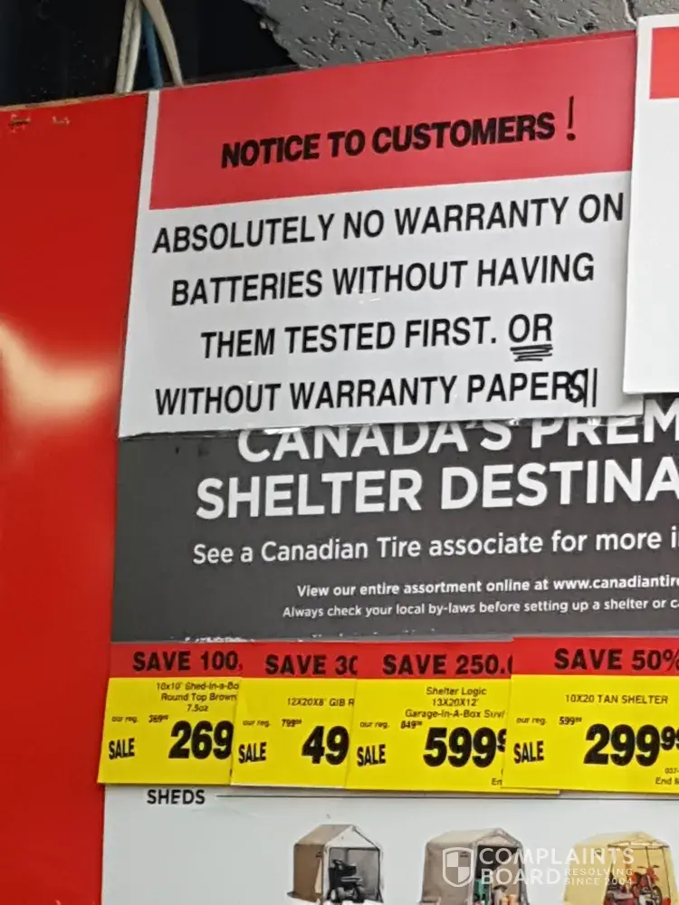 Battery would not take a charge, bring it in on May 3/18. Battery purchased May 8th/17. I have the receipts and warranty information with me. Tested and failed. Owners daughter tells me it's not under warranty as its 12 months and I had it for the month of May last year, so its over 12m...WTF? I argue 12m is 1yr/52wks/365d. She says if she's not getting money back, I'm not. Called CT customer service and they agree with me warranty is from date of purchase. Owner now involved. Now says he's not honouring the warranty as he will put it on a high volt charger and refurbish it. he does, it passes right after. I take the battery to an electrician/mechanic shop. They do a Battery Conductance Test and it fails. Bring the batter back, desk tests it. Fails. Again the owner puts it on the charger/tester and says its fine now. I don't want a refurbished battery that fails minutes after leaving the store. Customer Service calls the store and owner and he still refused to replace the battery. What is the point of a warranty! In the hands of a Customer Service Investigator now...lesson learned. Shop elsewhere.