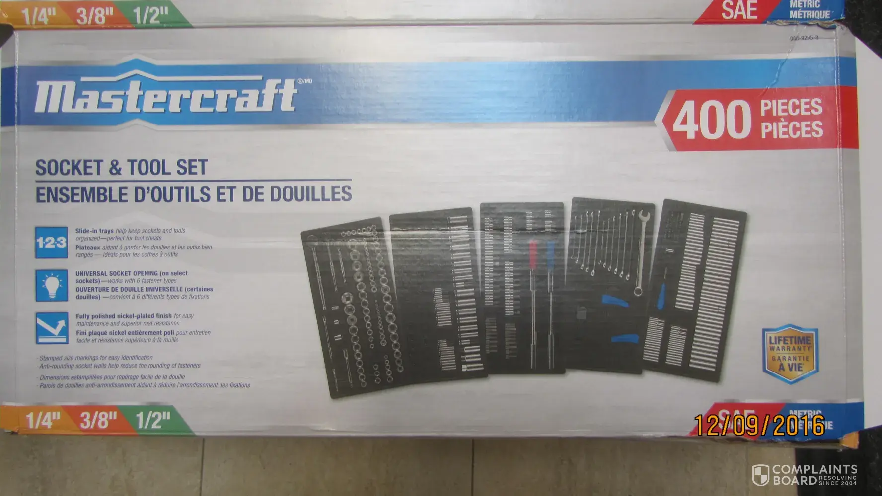 I bought item [protected] mc400pc socket on november 03, 2016 at 2625b weston road, canadian tire. Today december 09, I returned it.
