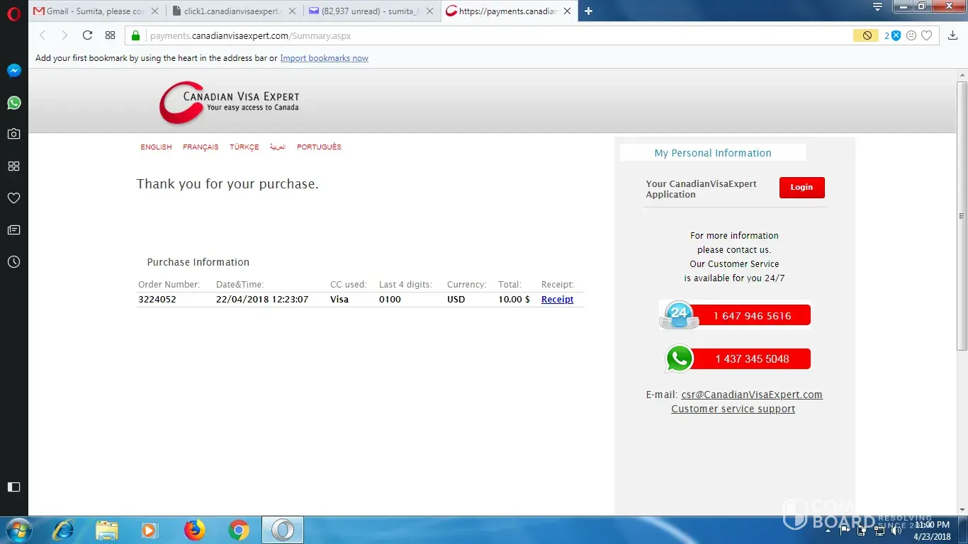 It had been almost two hours of contact in unpleasant situations with the Canadian Visa Expert Company. On several occasions I informed them that I was at the airport and the contact persisted aggressively and insistently. Even informing me that my cell phone battery was running out and with noises and sirens in the background the communication through them did not give a truce!