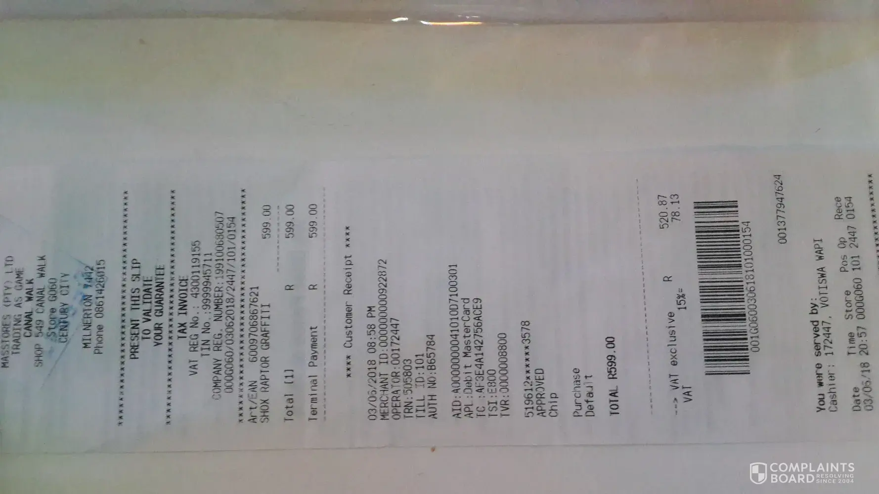 Canal Walk Shopping Centre has left an official reply on this complaint.