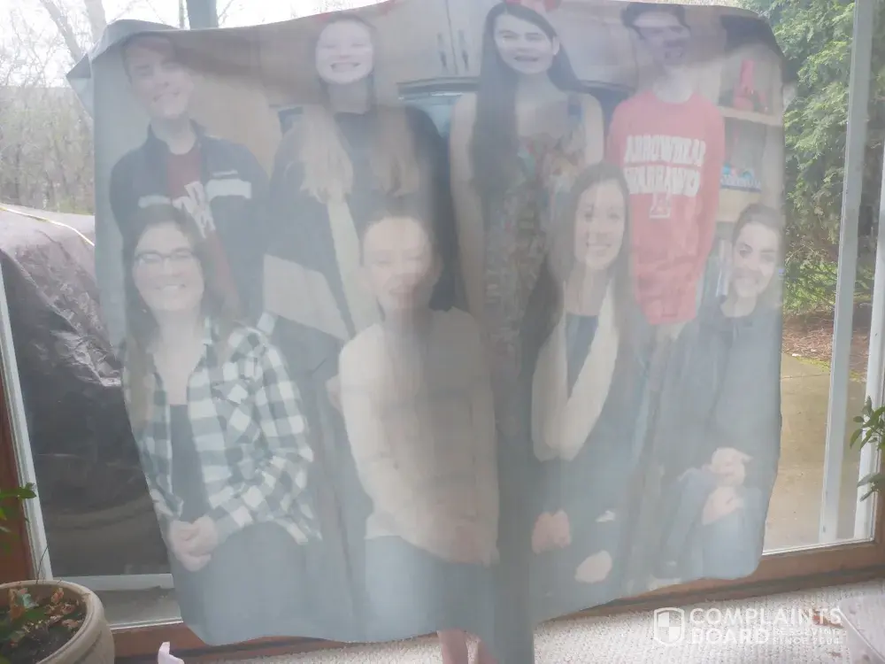 I have purchased many blankets from these people. They always seem to do something wrong. I'm a pretty easy-going person, so if it was halfway decent I accept it. This last time though, it was for my mother in laws 80th birthday and she can't see very well. They made her blanket very very light in color. It was muted. Very hard to see. I told them that I needed a new one right away because her birthday was just a week away. They said I had to cut the one I had all up to get a new one. I told them I wanted to new one ASAP and I would not cut the old one up. I would give it to the poor. Also, they had a policy if it wasn't done right, I could return it. It was their mistake and I had 30 days to return and since it was their fault, they should give me a label to return it. They said no, that the only option was to rip it all up. I said that was ridiculous. They would rather rip it up than give it to the poor. At this very time, I had recently ordered 4 more blankets for $165 and told them to cancel that order since they could not help me with this order. They said they were the grievance department and could not cancel an order already processed. They said I could give it to the poor but would only make me a new one once I gave it to the poor and they got a recipe. REDICUOLOUS! I had to give my mother in law this very dull blanket of all her grandchildren. NEVER NEVER NEVER NEVER USE THIS COMPAY! MEAN AND SHISTERS!