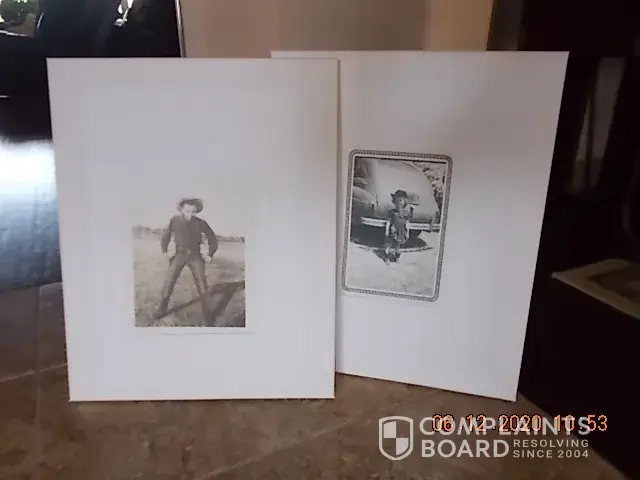 If the product you sent to me were "usable" I would have never asked for my money back, or a replacement. This is not what i do for a living/ I have good job. I have enough money to pay 47 dollars for a print of a picture that holds meaning for me. I am not trying to cheat you. Quite the reverse i think. Attached is a photo, on your left you will see a photo from a "professional " company, that they claim is "fine" for 47 dollars. on your right you will see a picture same size not changed in any way from the original printed through my 30$ printer for 47 cents. Return My money, and I "may"not call the BBB and post this all over pinterst, facebook, and twitter. You have had two opportunities to do the right thing. You will not get a third. Good Day.